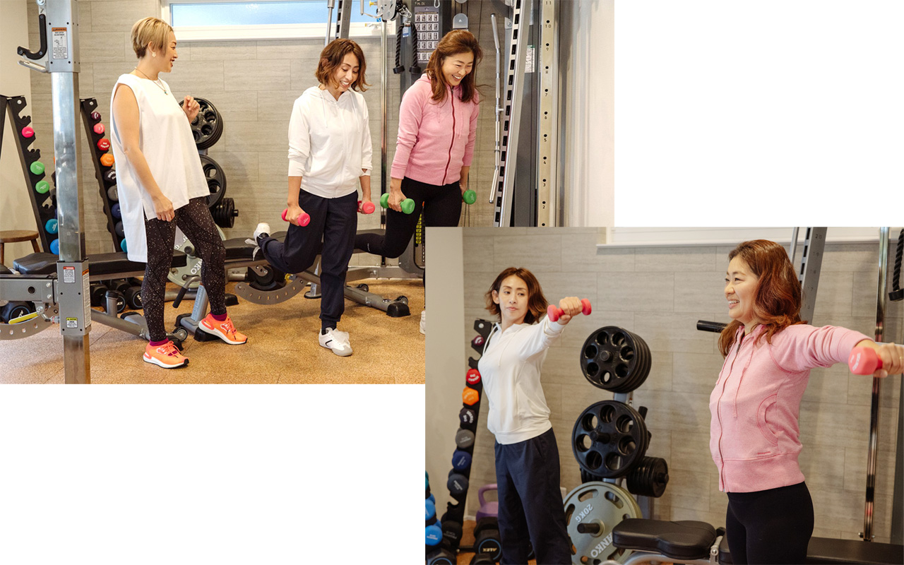 一緒に動いて、笑って、筋肉にきっちり効かせます。
